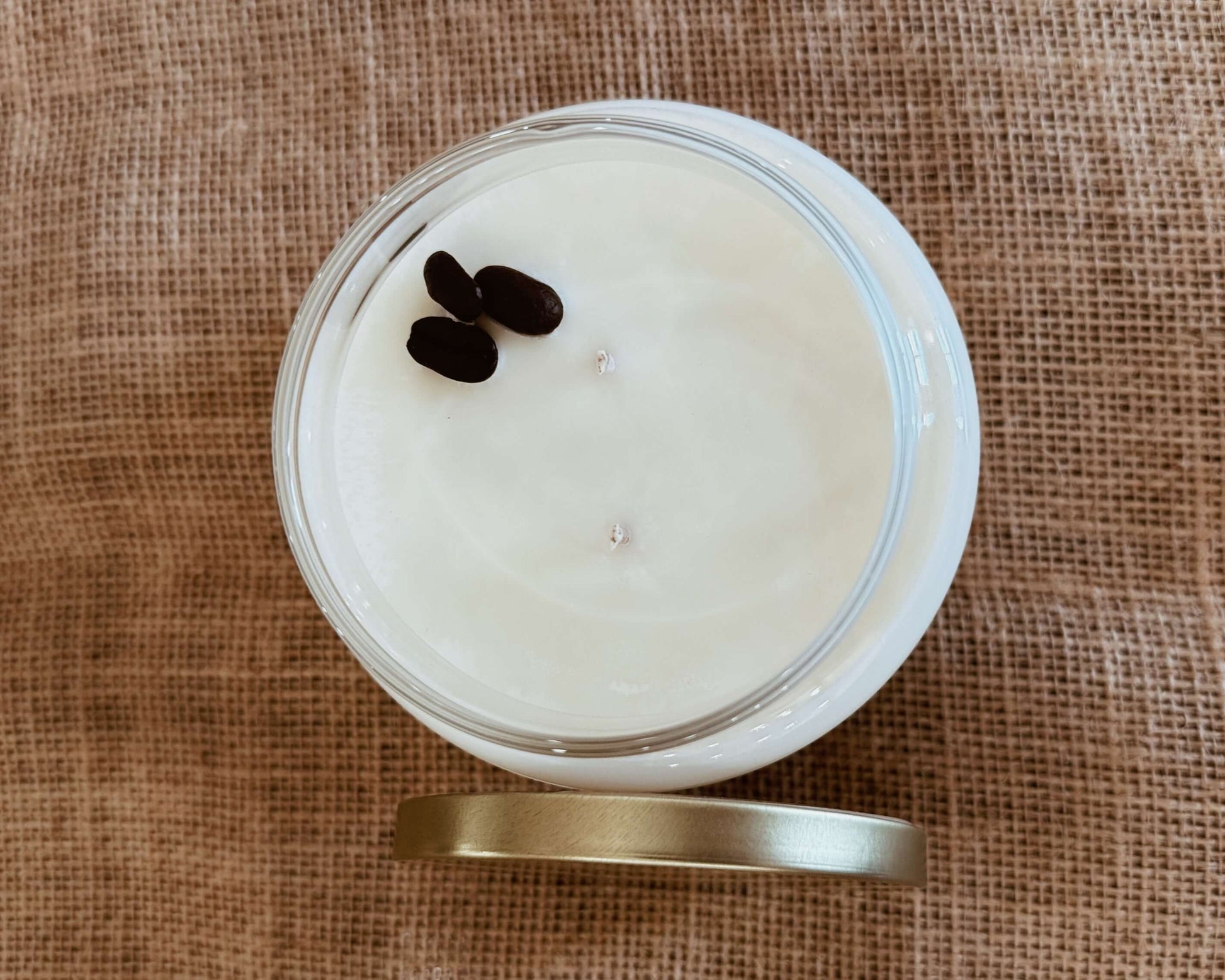 8oz Candle: Rich coffee shop atmosphere in our signature 8oz vessel. 40+ hours of clean burning coffee and vanilla notes.